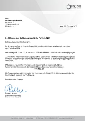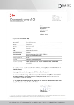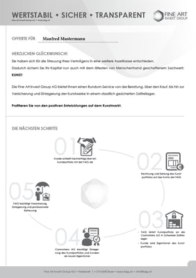 In acht Schritten wird hier beispielhaft der Prozess von der ersten Offerte bis hin zur Rechnung für Versicherungs- & Lagergebühr transparent und einfach aufgezeigt. Einfach auf die angezeigten Bilder klicken, um sie zu vergrößern.